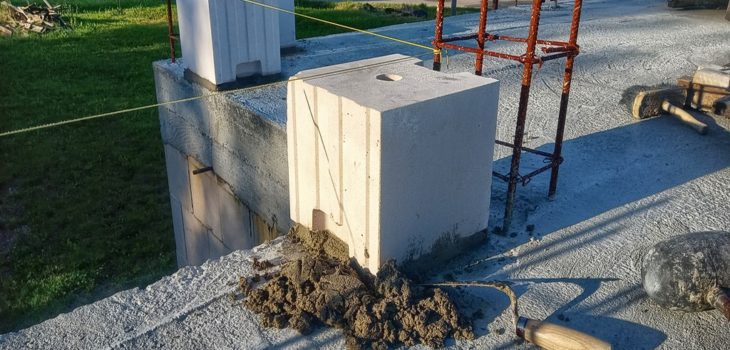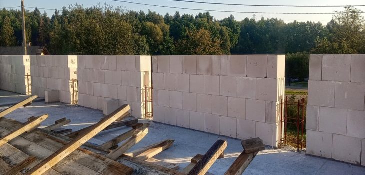 Budowa domu systemem gospodarczym. Poziomowanie i murowanie pierwszej warstwy.