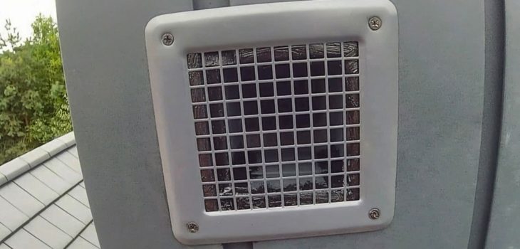 Budowa domu systemem gospodarczym. Montaż kratki wentylacyjnej na kominie.