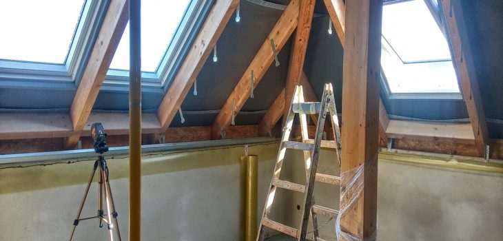 Poziomowanie wieszaków na skosie poddasza