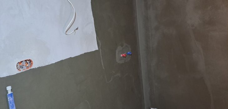 Budowa domu systemem gospodarczym. Dwuskładnikowa hydroizolacja w łazience.